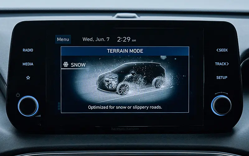 With its versatile drive modes, SANTA FE anticipates your every driving need and road condition. Optimize your efficiency with Eco Mode or embrace dynamic performance using Sport Mode. Intuitively adapting to changing conditions, Smart Mode delivers a personalized and exhilarating drive.